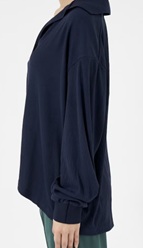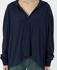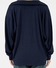 吸汗速乾の素材を使ったボリューム感たっぷりのスキッパートップス。胸元の開きをあえて深くし、コーディネートによって顔色をを変えてくれるのがポイントです
