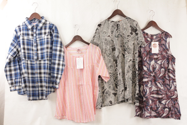 コットンブラウスをはじめとして、チュニックやワンピース、Tシャツなど、トップス類を各種取り混ぜたアソートセットです。